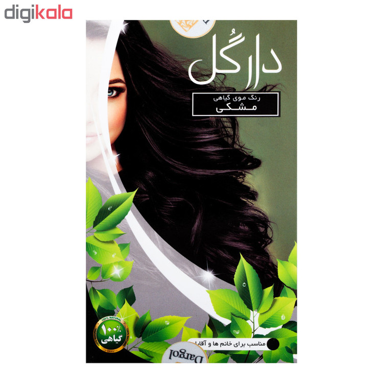 رنگ مو گیاهی دارگل بدون اینکه به موی شما آسیبی برساند موهای شما را به رنگ دلخواهتان تغییر می دهد.مصرف مداوم این رنگ مو با توجه به استفاده از گیاهان دارویی از قبیل حنا،بابونه،رزماری،سدر و... علاوه بر خواص رنگ دهی باعث براقی مو،تقویت مو،جلوگیری از ریزش مو،از بین بردن شوره سر و نرم کردن موی سر شما هم می باشد.